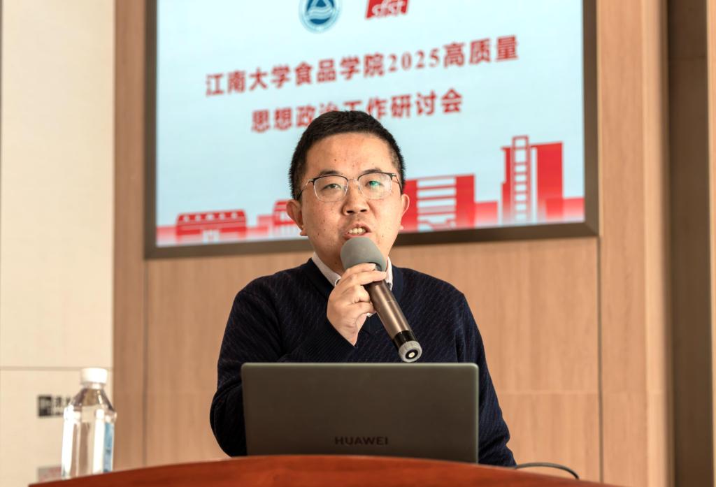 李雷以《思政引领·一流浸润·匠心涵育“食”代新人》为题,对学院2025年高质量思想政治工作进行思路与框架搭建。他提出一条基本思路:“以人为本,产教协同,向内聚合,向外竞争,打造一流学科高质量思政育人新范式”;两大关键系统:“大学生多元融合成长支持体系”“辅导员强基赋能生涯发展机制”;三项重点任务:打造智能云平台、培育示范性人才、优化项目制管理;四个破题方向:导学关系、体育精神、实践品牌、来华留学。