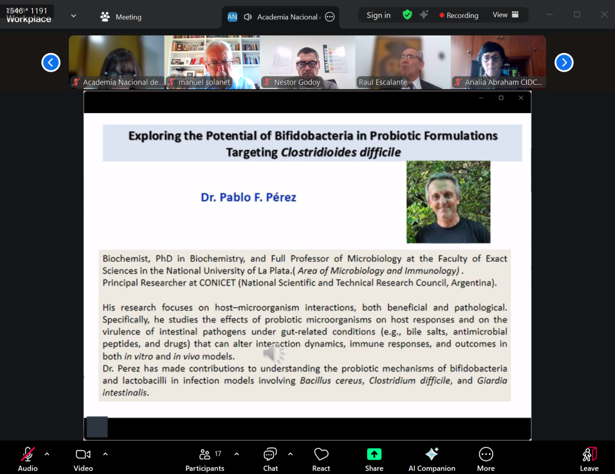 研讨会期间,中阿双方专家依次进行了精彩的专题报告。阿方专家首先登场,Analía G. Abraham博士探讨手工发酵食品、益生菌和益生元等活性物质的开发及功能评价相关研究;Pablo F. Pérez博士分析双歧杆菌在针对艰难梭菌的益生菌配方中的潜力;Néstor A. Godoy工程师分享Adecoagro公司改善营养的举措;Pablo Renzulli介绍阿根廷市场上的益生菌和益生元乳制品产业现状。中方专家同样贡献了高水平的研究成果,田丰伟教授介绍膳食多糖与肠道菌群相互作用的研究进展;王刚教授阐述与母乳喂养相关的双歧杆菌通过肠道菌群-α-亚麻酸和亚油酸代谢-肠肝循环轴缓解新生儿高胆红素血症的机制;杨波教授揭示双歧杆菌通过脂肪酸异构化和肠道菌群调节抑制小鼠结直肠肿瘤发生进展的作用。