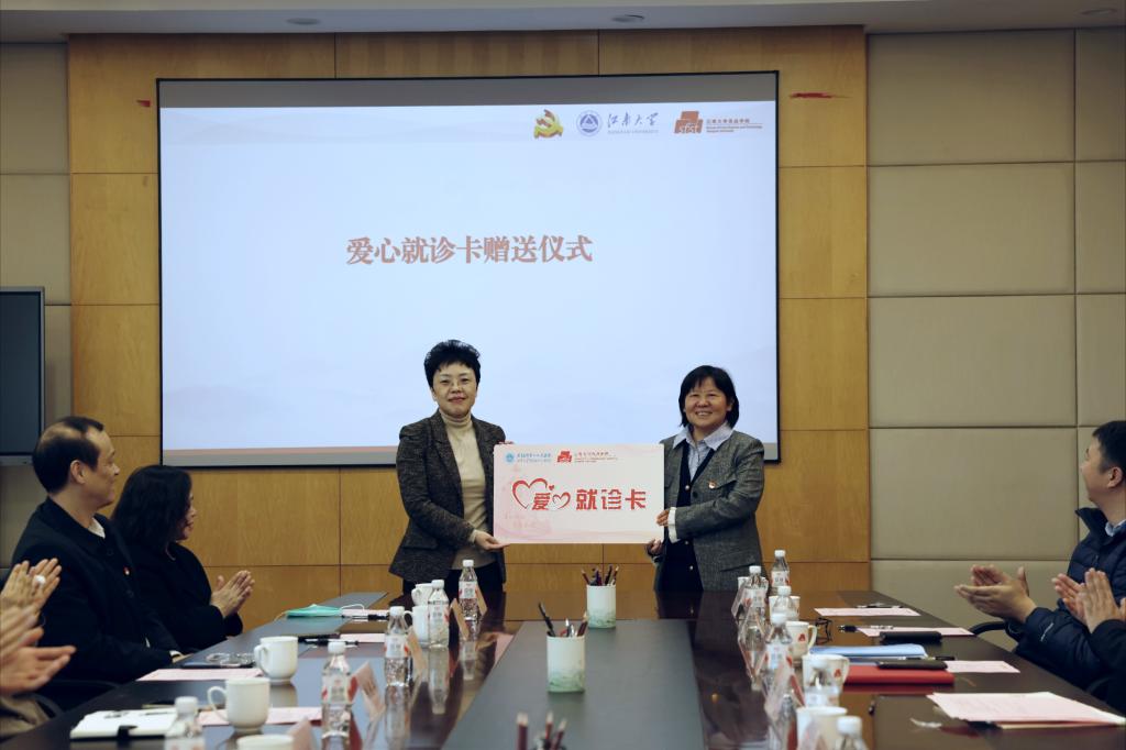 院长孙秀兰共同完成了“爱心就诊卡”赠送仪式。这一暖心举措不仅体现了医院对高校师生的关怀,也是“医食一家亲”的生动写照。
