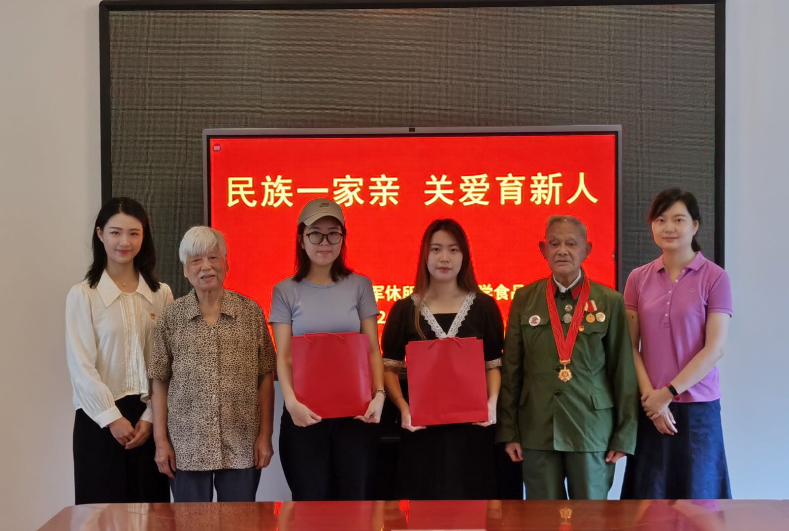 董振泰老先生对同学们取得的成绩表示欣慰。他介绍了个人军旅生涯和发展历程,希望同学们认真落实党史学习教育要求,珍惜和平年代的来之不易,打好基础、认真求学,把握机遇、砥砺前行,为国家建设奉献力量。华福娟老干部也对同学们寄予期盼,希望各个民族的学生团结一致、共同进步,努力建设好自己的家乡和祖国。